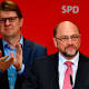 Martin Schulz, center, leader of the Social Democratic Party, spoke in Berlin on Sunday after preliminary results showed the party would lose elections in the West German state of North Rhine-Westphalia. Credit John Macdougall/Agence France-Presse ...