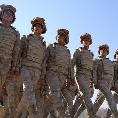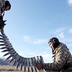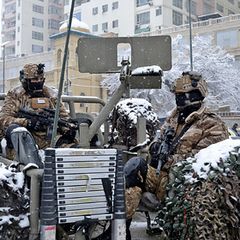 | Российские миротворцы из контингента Организации Договора о коллективной безопасности (ОДКБ) по прибытии... |