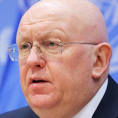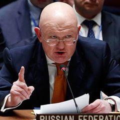 | Брифинг представителя России в ООН Василия Небензи на фоне военной спецоперации на... |