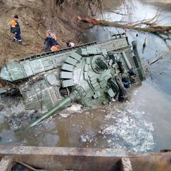 | Ukraine's emergency services drag submerged Russian tank from river |