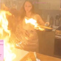 Twitch user and amateur cook Kelly Caron nearly lost her kitchen to a fire while searing a steak during...