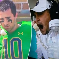 Notre Dame offensive coordinator Tommy Rees berates quarterback Drew Pyne