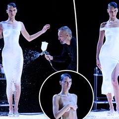| Bella Hadid gets dress spray-painted on mid-fashion show |