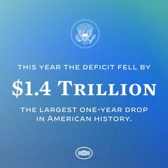 | Last year, the deficit fell by $350 billion. This year, it'll fall by $1.4 trillion. And, because... |