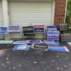 | A Pennsylvania woman recovered over 100 political campaign yard signs for Democratic candidates in a... |