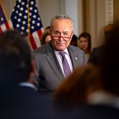 | House Speaker Nancy Pelosi and Senate Democratic Leader Chuck Schumer can be seen talking to governors... |