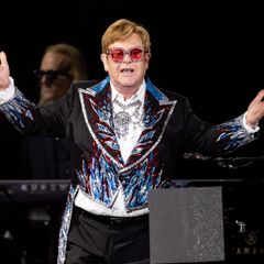 | The 32-year-old donned a sparkly gold jumpsuit with wavy hair and her signature red lip. On stage to... |