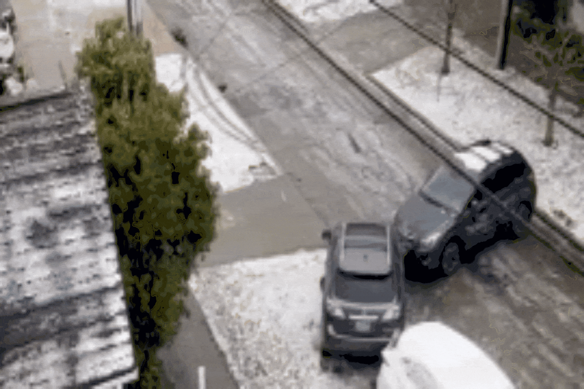 | Wild video shows car sliding down icy street colliding with multiple vehicles |
