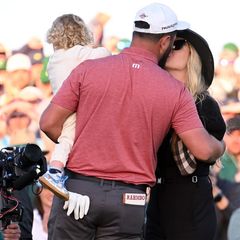 Jon Rahm kisses wife Kelley Cahill after winning his first Masters