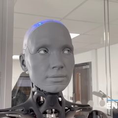 Ameca boasts hyperrealistic facial expressions, thanks to the 17 motors inside her head, and is fluent...