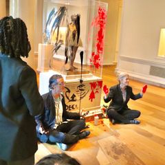 | Timothy Martin, 53, and Joanna Smith, 53, were taken into custody for allegedly smearing paint on a sculpture... |