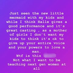 | "As a mother of girls I don't want my kids to think it's ok to give up your entire voice and your powers... |