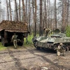| Russian military tries to camouflage its fuel trucks with piles of wood to avoid Ukrainian drone attacks.... |
