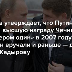 | Кадыров утверждает, что Путин получил высшую награду Чечни «за номером один» в 2007... |
