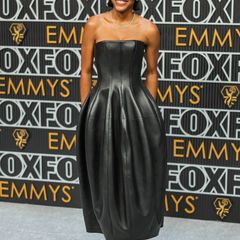 | Ayo Edebiri is 'snatched' in leather Louis Vuitton dress on the 2024 Emmys red carpet |