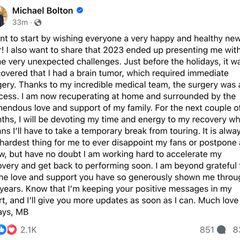 | Michael Bolton reveals brain tumor diagnosis, 'immediate surgery' in emotional note... |